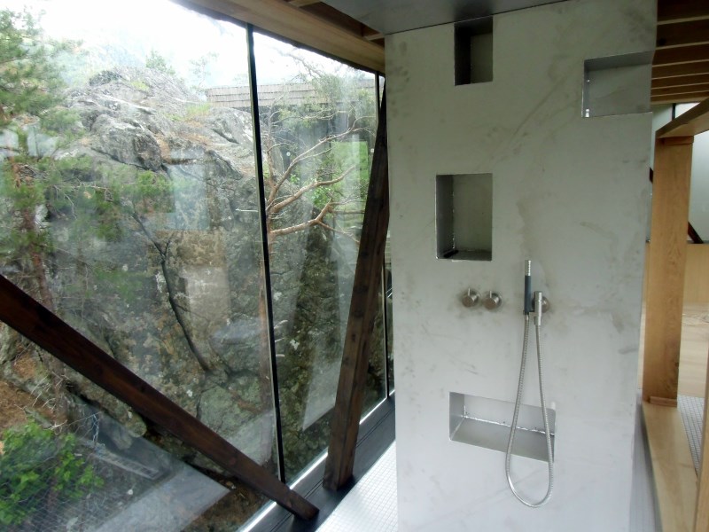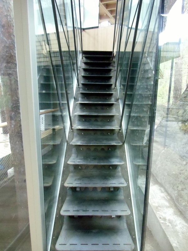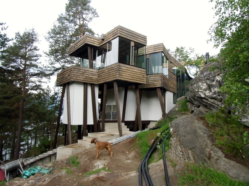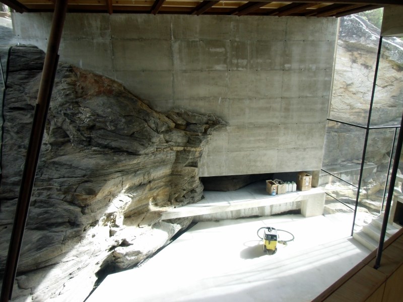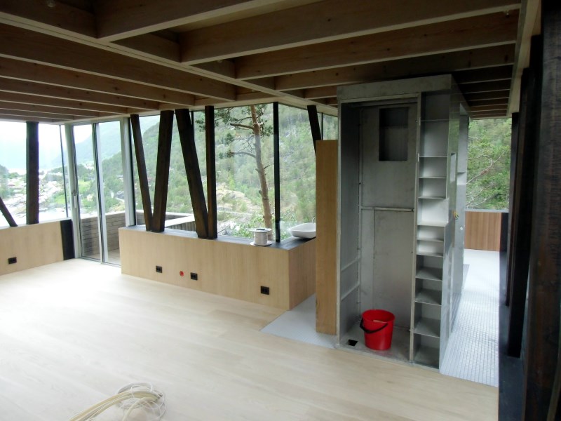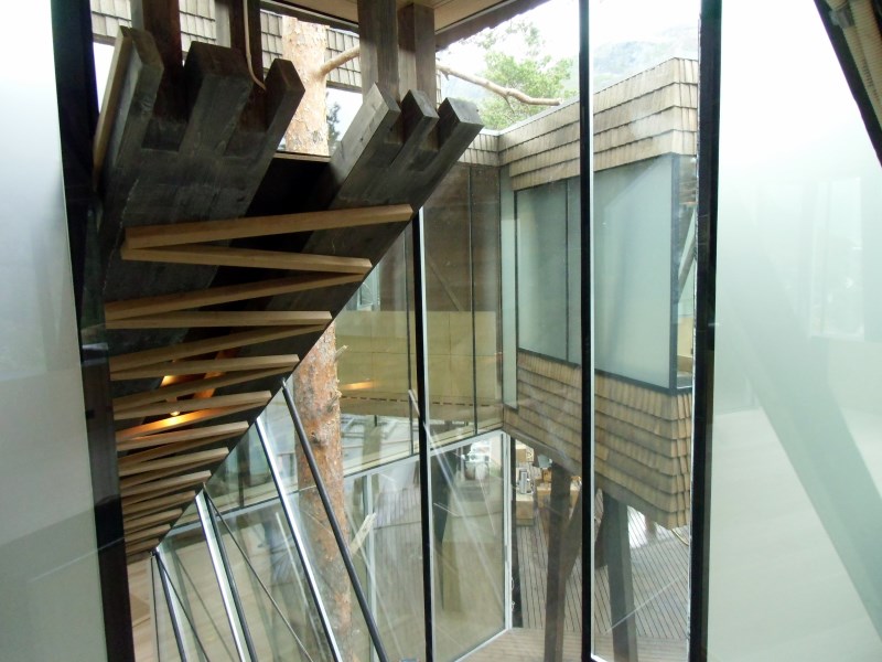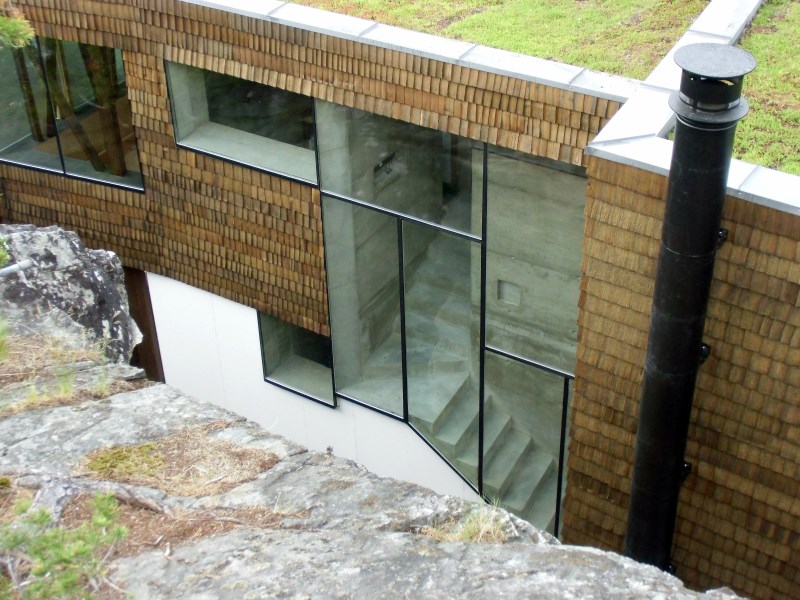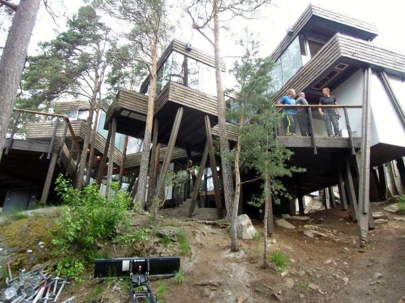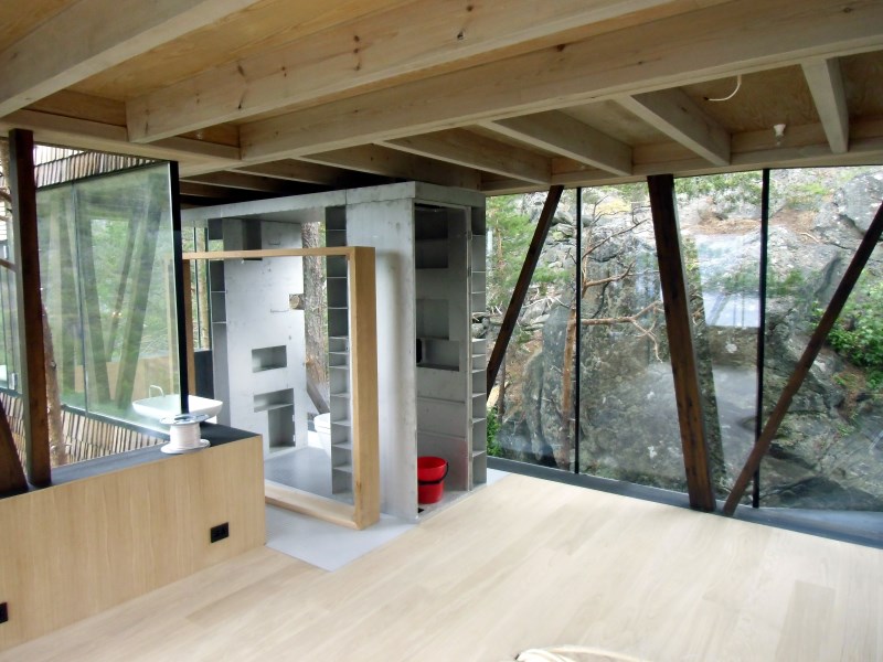 Glasset er montert så og si uten profiler i høyder opp til 6 meter. I hjørner er det benyttet step kanter på glasset. En del av glasset er montert i slisser skåret ned i fjellet. Det må også nevnes at det ikke er bilvei frem til hytta og alt glass er fraktet inn med helikopter. Tegnet av arkitektfirmaet Jensen & Skodvin.