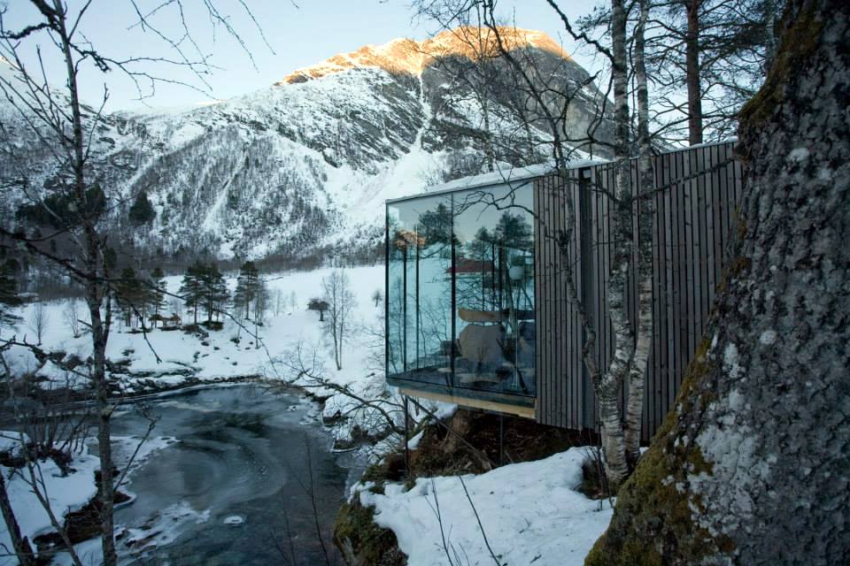 Vi har levert og montert glass til prosjekt Juvet Landskapshotell I Valldal.