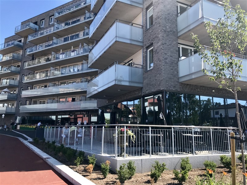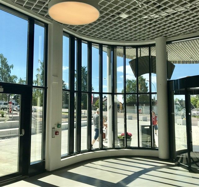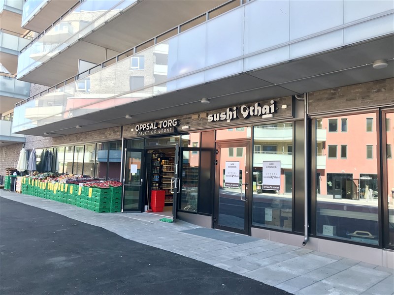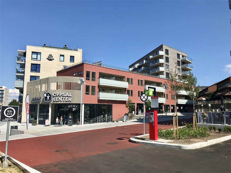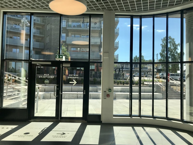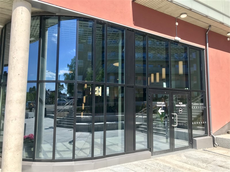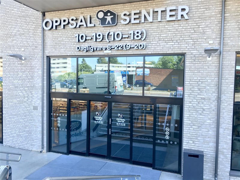 For entreprenør Veidekke har vi levert og montert alu-glass fasader, dører, automat skyvedørs felter, glassvegger og overlys til prosjektet Oppsal Senter.