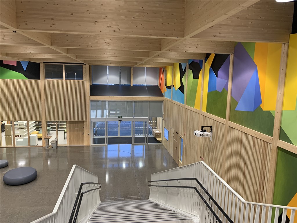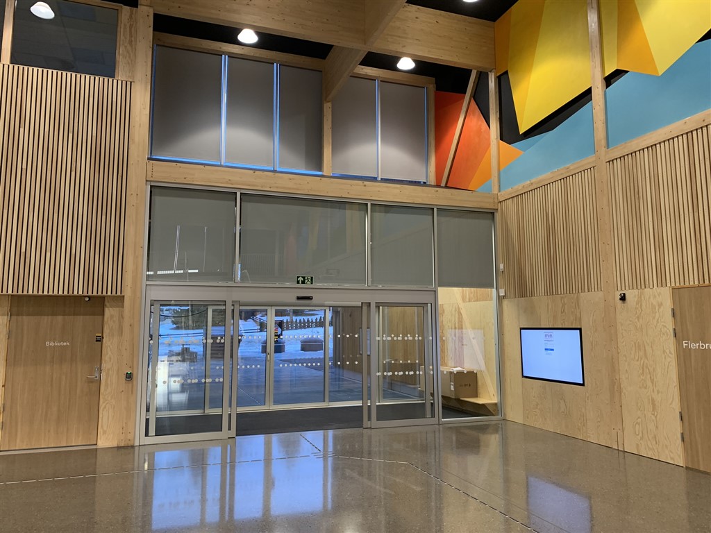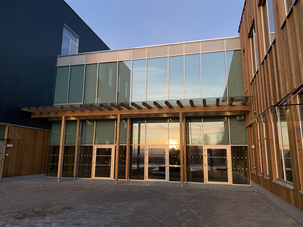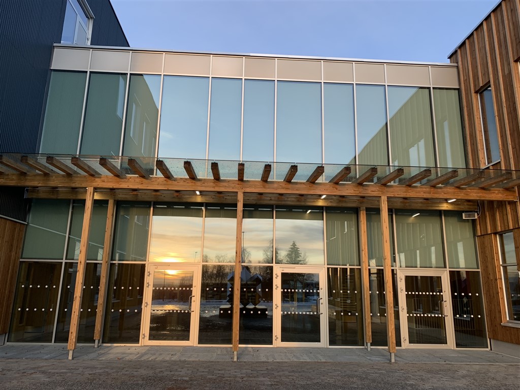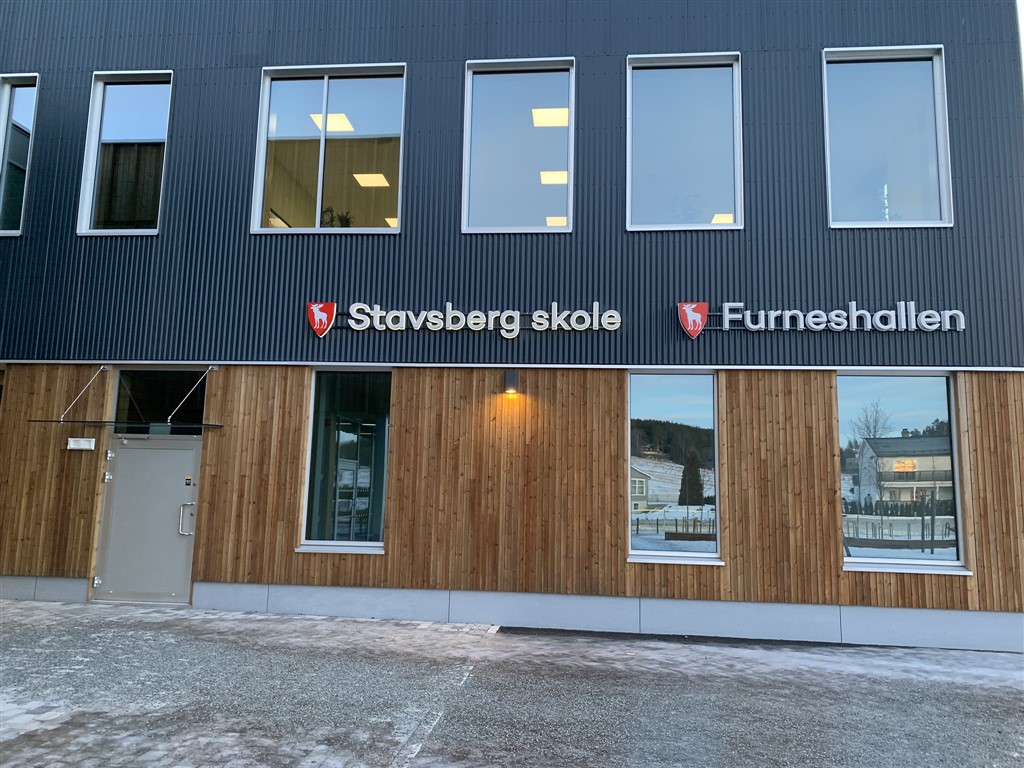 For entreprenør Syljuåsen AS har vi levert og montert aluminium-glass fasadefelter, dører, dør felter og vinduer, samt glass-baldakiner og glass til pergola for prosjektet Stavsberg Skole og Furneshallen.