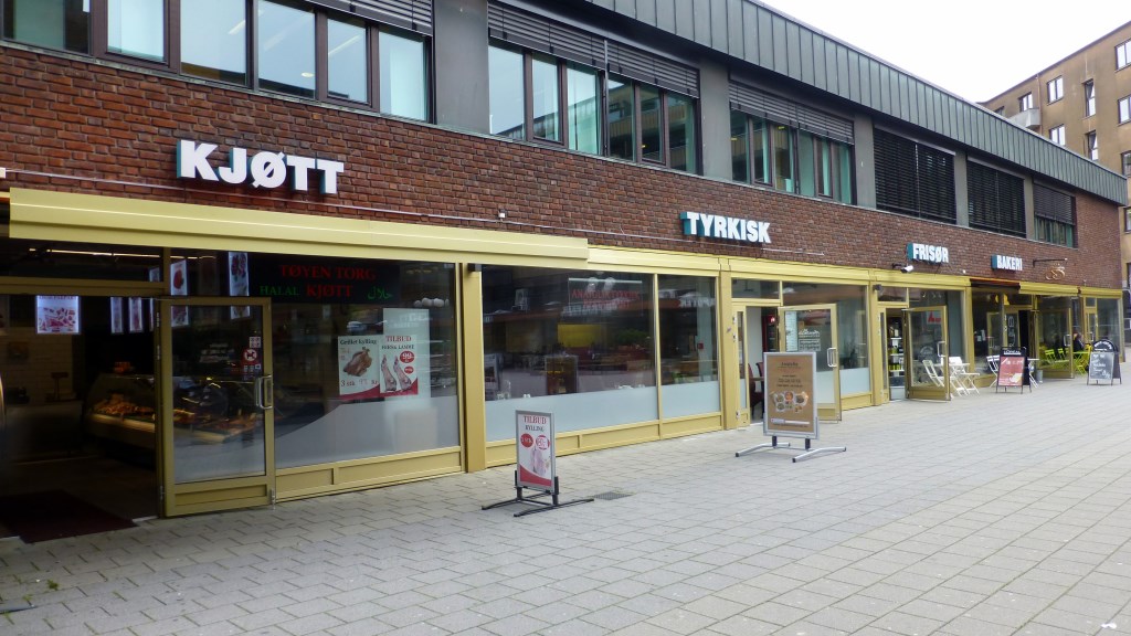 På Tøyen Torg i Oslo har vi demontert gamle fasader og levert og montert nye aluminium-glass fasader og dører som del av en større oppgradering av området.